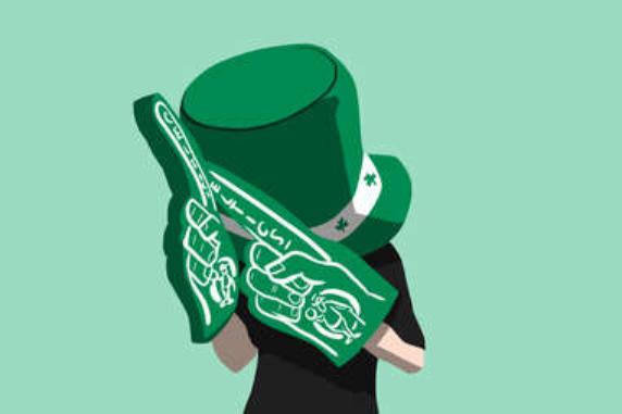 sideburns included -- is dyed green to match the Celtics jacket he always wears.
